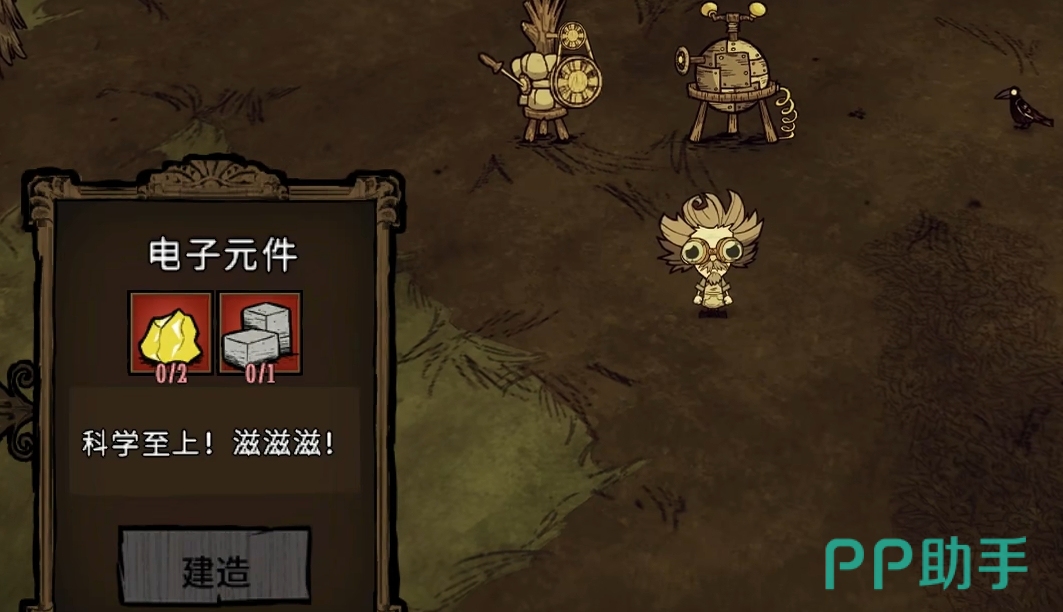 要制作电子元件,首先需要搭建科学机器。准备1个金块、4块石头和4根木头即可完成建造,放置于地面后便可作为研发工具使用。需要注意的是,只有科学家角色可以随时制作电子元件,其他角色必须站在科学机器的作用范围内才能首次解锁该配方。一旦成功合成一次,后续便无需依赖机器,可直接在工作台中制作。