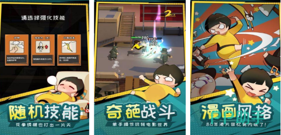 整体美术风格高度还原上世纪80年代港式武侠电影的视觉质感,角色采用标志性橡皮人造型,个性鲜明。玩家可自由选择心仪角色,并启用自动战斗功能。在广阔的地图环境中潜伏着大量对手,通过主动探索与自动连招结合的方式,释放华丽技能特效。对于崇拜成龙、周星驰等影坛传奇的玩家来说,这款游戏能充分满足其成为功夫英雄的梦想。