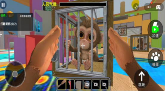 该游戏以动物园中的猴子为主角,通过其视角展现被圈养动物的生活状态。你会经历游客的各种反应——有的投喂、有的嘲笑,也有善意的互动。通过点击操作,可进行跳跃、抓痒、抢东西等行为,体验既诙谐又略带反思的动物生存处境。