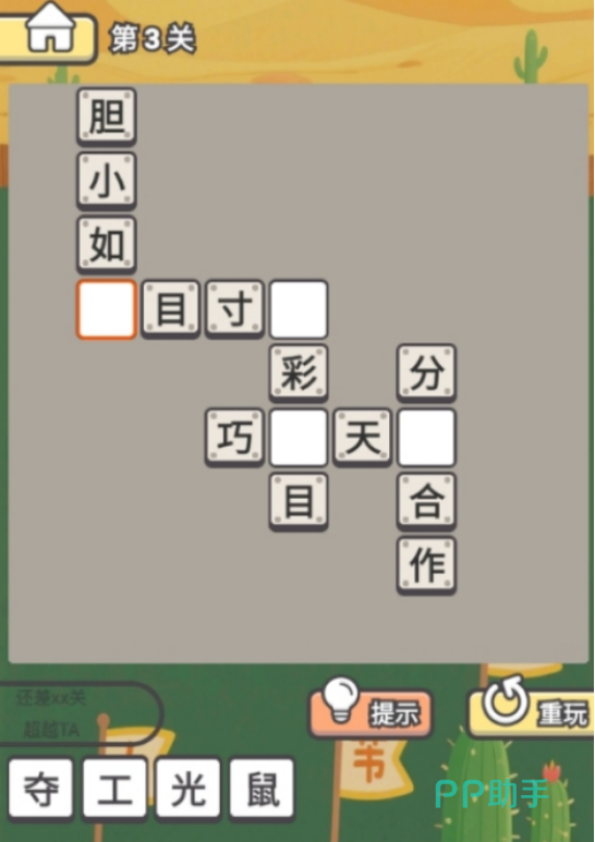 简单易上手的特色模式,经典的拼词玩法,每个关卡都会给予相应的成语,只不过有空缺,玩家要根据你的认知将空缺全部填满,最终拼成为完整的词汇。尤其采用非常独特的卡通渲染风格,整体的画面简洁又明亮,对于青少年以及儿童来说非常适合偏向他们的审美,多彩的画风以及独特的画面设计,全面增强视觉吸引力。