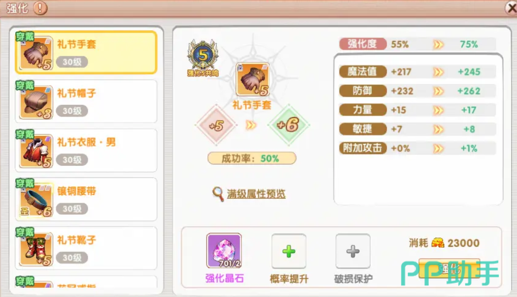在强化初期,装备从+1至+6阶段属于安全区间,不会出现等级下降的情况,玩家可放心操作。当强化等级达到+7及以上时,失败可能导致装备等级降低,此时建议先对非关键副装进行试强化,观察系统反馈的失败频率,在确认相对稳定后再对主力装备动手。