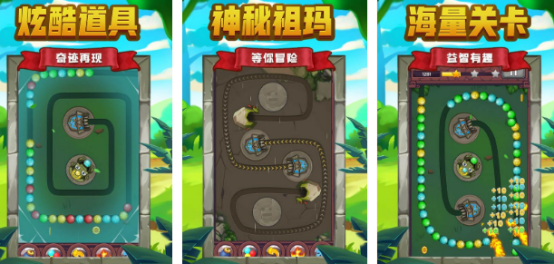 操作简单内容丰富,玩法经典又独特,以非常别致的消除形式为特色,通过点击屏幕控制祖玛发射器来发射小的彩球,只要匹配三个或者三个以上相同颜色的球球,即可轻松消除,不同年龄段玩家都可以参与其中,轻松上手。啊具有传统的祖玛消除玩法,另外又新增了极限。挑战以及限时模式,关卡设计难度逐步增加,确保小伙伴们拥有独特的新鲜感。