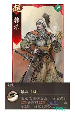 在副将选择方面,张燕是理想人选之一。其天赋可在张辽叠加“威风”时同步触发“激昂”效果,形成良好的联动增益。韩浩也是优质选项,其技能机制能被“当锋摧决”与“铁马破阵”有效激活,数值表现强劲且持续时间较长。此外,蹋顿同样是通用性强的副将选择,击杀敌人后可恢复兵力,并提供攻防双重增益,综合表现极为出色。