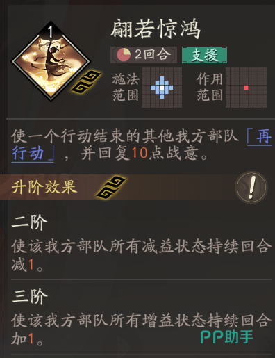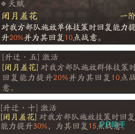 在技能配置方面,需根据实际需求灵活选择。若无特定天赋限制,推荐使用“翩若惊鸿+舞影+扶危”组合。其中,“翩若惊鸿”是貂蝉的核心技能,提供再次行动能力,极大增强操作灵活性。“扶危”不仅具备无冷却的治疗效果,还能驱散负面状态,显著提升团队生存能力。当天赋达到二阶及以上时,可切换为“翩若惊鸿+沉鱼落雁+援兵”组合。“沉鱼落雁”能实现群体回血并恢复战意,配合天赋可为全队叠加增益;“援兵”则有效填补技能空档期,使战斗节奏更加流畅。