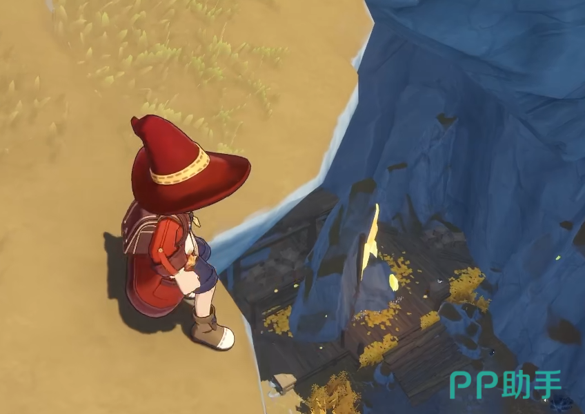 抵达晨曦山后,面向西方前进,途中会遇到一块显著的大石。继续前行,前方会出现一个深坑。此时需站在坑边,向左下方观察。