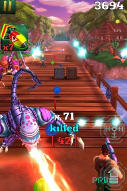 以外星入侵为主题的射击类手游,玩家操控人类士兵,通过跳跃、射击等多种方式来对抗外星生物,此手游最具有特色的模式就是独特的重力感应体系,通过重力感应来移动角色,让游戏整体操作流畅感更加独特。每次完成任务之后,都能够获得足够丰厚的奖励以及相应的硬币,收集硬币在虚拟商店当中购买道具提升战力。