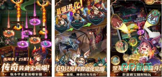 加入非常别致的肉鸽元素,在不同的地牢当中遇到的怪物和掉落的装备是有所差异的,当攻击魔物之后,有机会获得各类型特色装备,这些都能够让你强化战斗力。有超过70多只契约兽通过进化觉醒的方式展开战斗,别致的竖屏单手战斗机制,让你随时随地自由刷宝,传奇装备全局都会爆装。