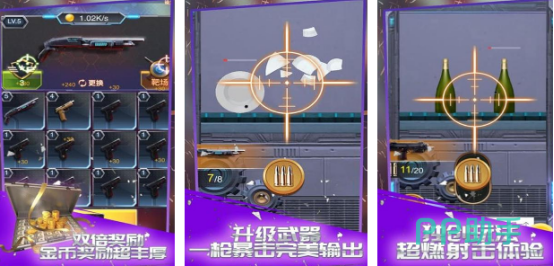 放置合成与3d枪战相结合,感受无比真实的武器模拟,通过自由合成的方式来升级武器种类,能够进入靶场,以第一人称射击的方式,享受枪械火力全开的魅力。每次完成任务都有机会解锁不同武器和相应的敌人展开作战,通过合成枪械来获得独特的武器,增强沉浸感,多样化玩法,日常登录以及关卡任务等不同的机制都超级独特。
