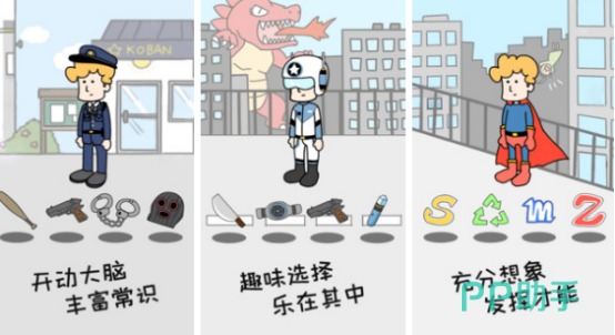 超休闲益智类手游,可以与其他好友共同实时互动,享受无限欢乐,这样的特色游戏令人欲罢不能,每个关卡看似较为简单,但想要成功通过并没有那么容易,需要开动大脑,还要有足够丰富的日常常识,然后选择相应的道具,帮助角色解决难题,这样的趣味特色,让小伙伴们乐在其中。