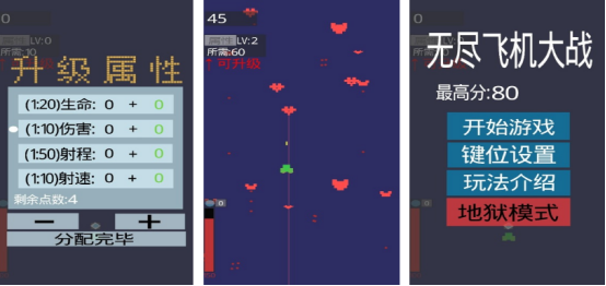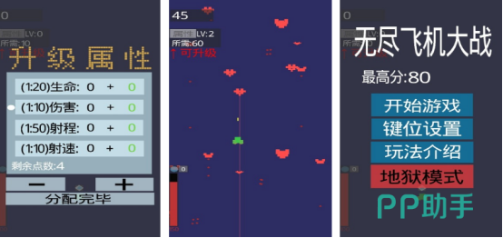 游戏的画面并不是特别清晰,但是却是曾经80年代人们特别喜欢的游戏,包括多种不同的飞机类型,正确选择自己喜欢的飞机之后,就可通过逐渐参与战斗的方式升级属性,包括生命值或者是伤害值等等。合理滑动屏幕操控飞机将敌方彻底击败,只要将每个关卡中所有的敌人全部打败后,即可获得更高分数。