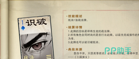 控场类战法牌用来扰乱对手节奏并控制战场,非常关键,像“识破”这种牌能有效应对敌方战法牌,特别是在对方施展高伤害战法的时候更为必要。“卜卦牌”依照判定产生随机效果,既可以造成伤害,又能够给敌方施加有效的限制,“霜冻”限制敌方选人,“久旱”让敌方跳过摸牌阶段,以此来打乱对方的部署,控场类战法牌的运用要求玩家具备出色的判断力和预判能力,恰当地打出这张牌也许就能让对手的计划落空。