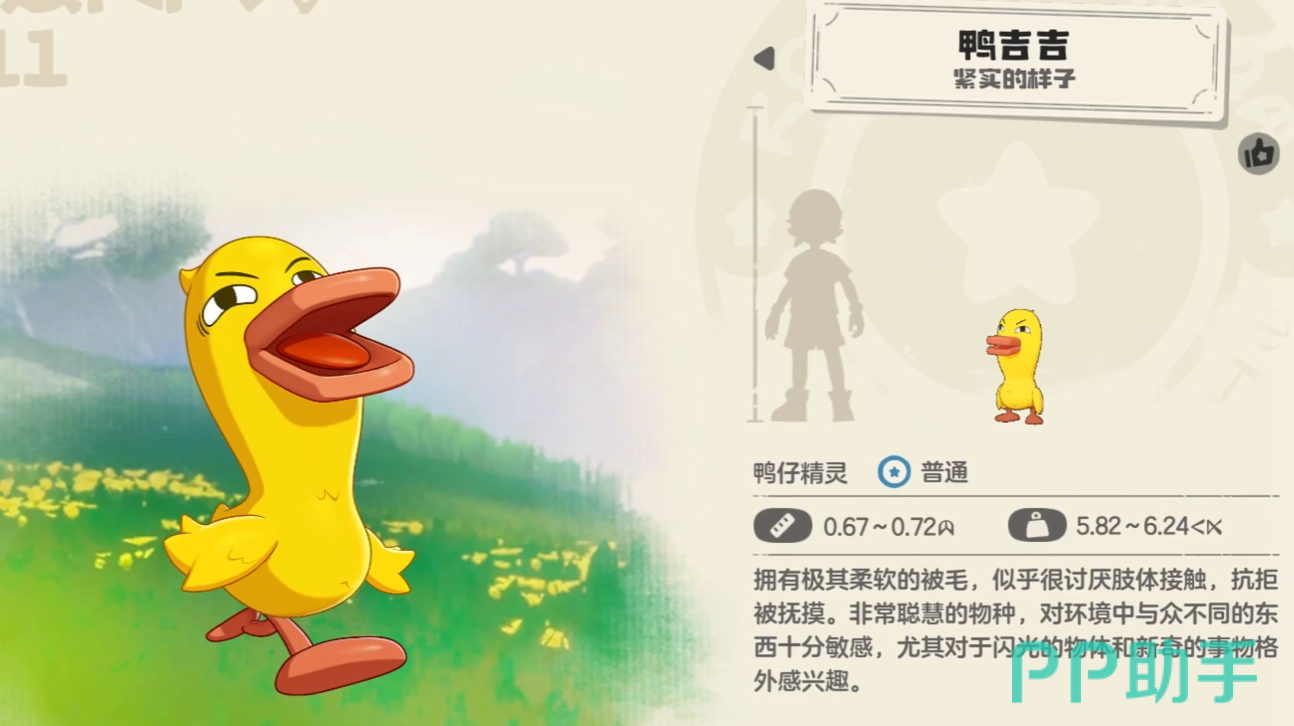 由于玩家想要顺利的完成霍曼尼提出的任务,所以就需要去根据他的要求来进行捕捉。一旦玩家需要顺利的开启任务之后,霍曼尼就需要一只嘴巴看上去特别的大,并且全身是毛茸茸的。他的叫声是嘎嘎的精灵,此时大家可能已经想到,霍曼尼所需要的就是鸭吉吉,要知道鸭吉吉的体型比较圆润,还有一种形态,那就是特别的瘦长,所以玩家想要捕捉压吉吉的话,就直接根据需求完成就可以。