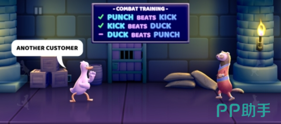 在这款趣味十足的格斗游戏中,玩家可选择小狗、小兔子等可爱动物形象进行变身,与身手敏捷的AI鸭子展开激烈对战。每一次出拳都充满力量感,考验你的反应与操作。游戏设置了多样化的战斗场景,从客厅到仓库,环境变化丰富,避免视觉疲劳。随着关卡推进,敌人的闪避与进攻策略也愈加复杂,挑战性十足。