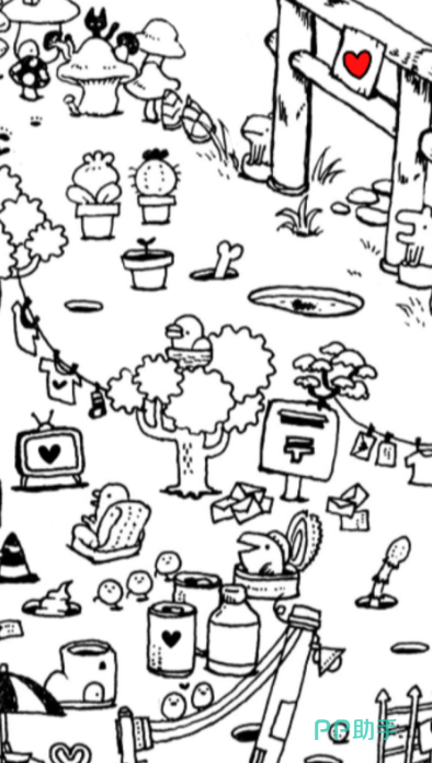 本作以大量精心绘制的黑白插画为核心玩法元素,涵盖自然风光、可爱动物等多种图像类型。玩家需在纷繁复杂的画面中精准定位隐藏物品,完成关卡挑战。这种设计极大锻炼了观察力与专注力。操作方式极为简便,仅需轻点屏幕即可进行探索。随着关卡逐步推进,难度递增,耐性与细致程度将不断受到考验与磨砺。