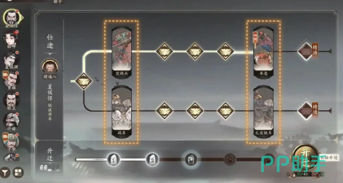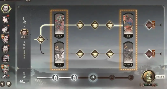 授官路线设有双分支,玩家可根据武将定位选择发展方向,进而影响其技能形态与战术用途。当授官节点达到12精通时,部分关键技能和精兵将解锁新功能,如调整攻击范围等。由于两条线均能获取完整技能体系,建议根据阵容需求灵活规划路线。