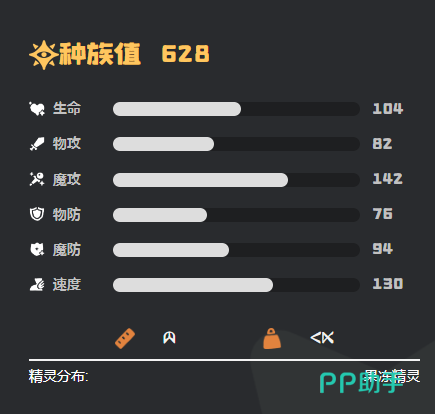 小皮球整体实力表现优异,总种族值高达628,其中魔法攻击达到142,速度属性为130,使其在施法效率和出手顺序上占据明显优势。104的生命值保障了其持续作战能力,而94的魔防也能有效抵御敌方法术伤害。从属性抗性来看,它对多种属性攻击具备良好抵抗效果,但在面对虫系精灵时需格外注意战术安排,避免陷入被动。