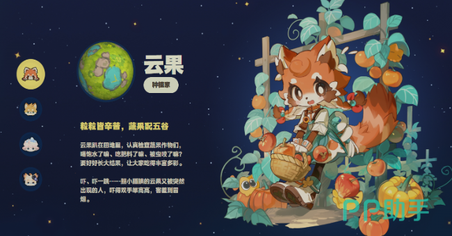 云果是一位对种植充满热情的角色,原型是一只外形讨喜的小狐狸。性格略显内向,平时说话轻声细语,可一旦进入农田,立刻变得专注而积极。她会细心照料每一片菜地、每一棵果树,仿佛它们都是珍贵的宝贝。在游戏中,若想培育稀有作物,这位擅长农耕的角色将是不可或缺的伙伴。
