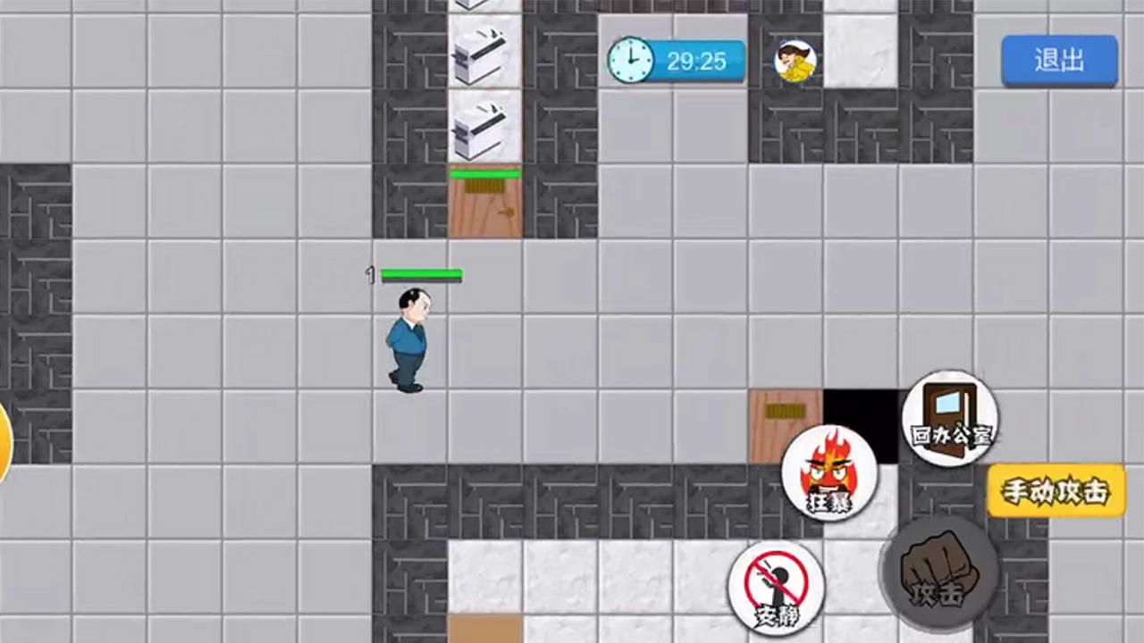 这款休闲向塔防游戏将舞台搬到了办公室环境中,没有鬼怪出没,取而代之的是四处巡查的老板。玩家需要在办公室选房间获取金币,用来搭建风扇炮、水杯盾等多种趣味防御工事,以阻挡老板的突袭。门板、床铺和防御塔均可升级,同时还能使用勇者之盾等特殊道具辅助防守,目标是在高压工作节奏中成功撑到10分钟内的下班时间。