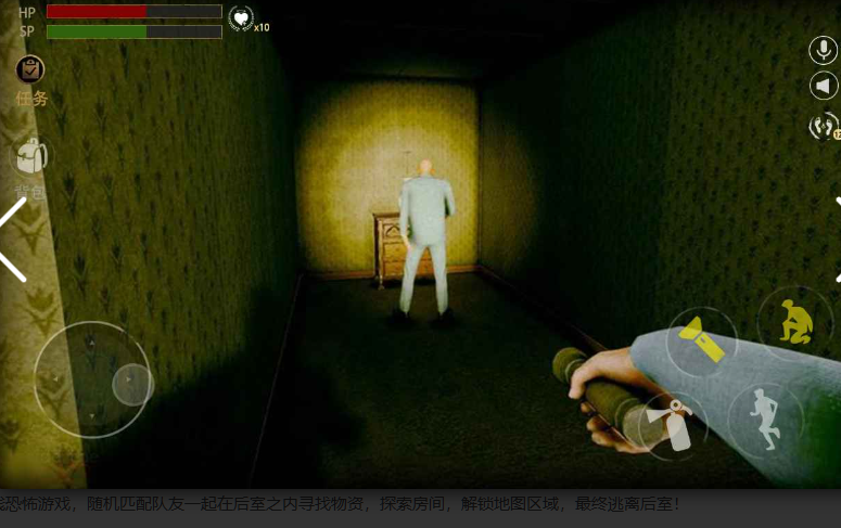 支持四人联机协作,玩家可在朦胧黄昏背景下共同面对诡异的后室世界。在这里不仅要应对各种未知生物,还需协同队友完成探索任务。多人同行有效缓解孤独带来的恐惧,增强游戏互动性。3D建模精细,场景细节丰富,每个角落都可能藏着关键道具或突发状况。邀请伙伴一同进入这片神秘领域,挑战极限,争取成功逃离。