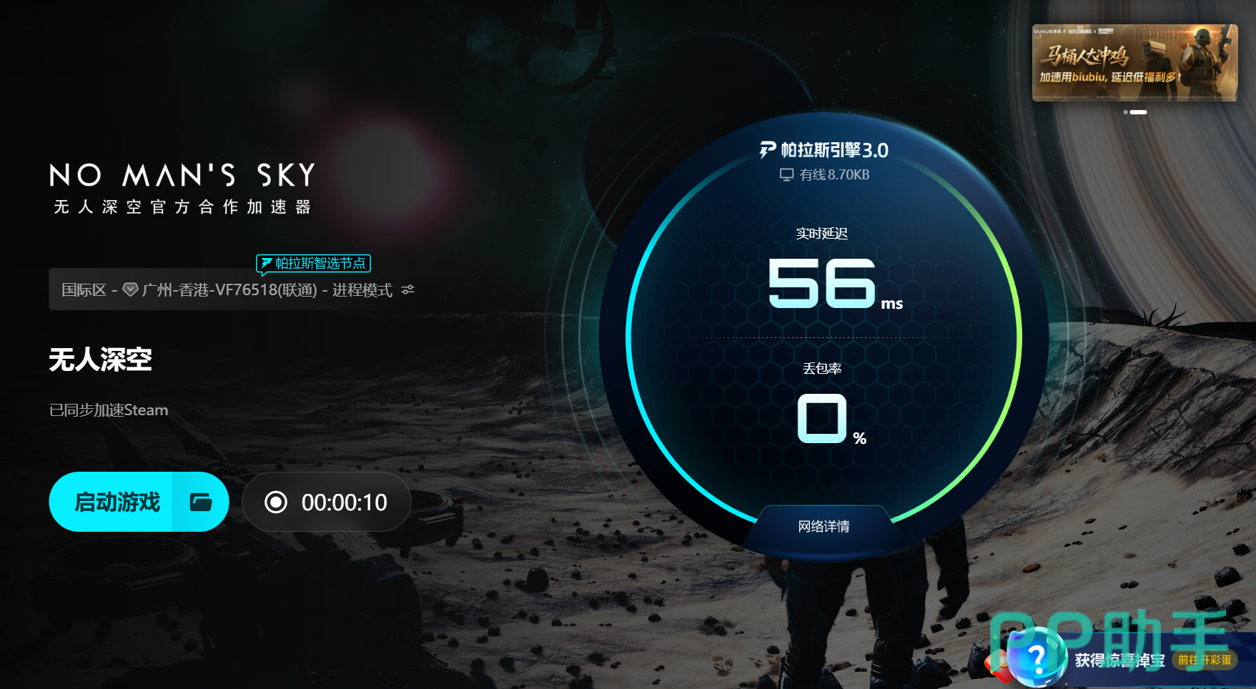 背后支撑这一流畅体验的是帕拉斯引擎3.0技术,该系统在玩家启动游戏的瞬间自动侦测当前网络状态,并为《无人深空》智能匹配最优专用加速节点。数据传输直达目标服务器,在检测到网络抖动时实时切换备用链路,确保连接持续不断。