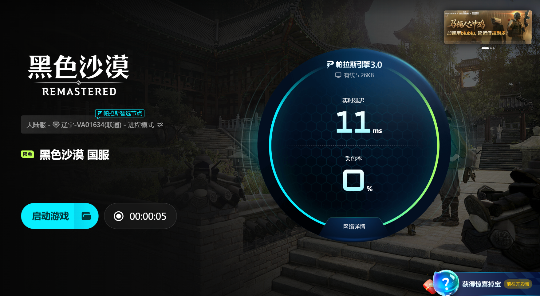《黑色沙漠》的魅力不在于胜负输赢,而在于让玩家真正沉浸于一个活生生的世界。解决黑屏问题的目的,并非提升帧率表现,而是确保你能顺利进入这个世界,成为其中的一份子。当网络连接稳固,你的角色才能真正“睁眼”看见大陆,旅程才得以真实展开。借助biubiu加速器,重建你与游戏之间的稳定链接,推开命运之门,告别无尽黑屏的困扰。