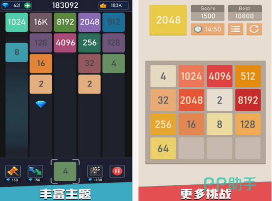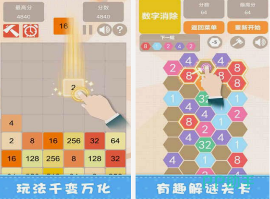 该游戏集合了多达12种不同的数字合成玩法,不仅包含传统的2048滑动合并,还有下落式、移动式等多种变化形式。玩家需灵活运用策略,在多彩的界面中完成从1024到2048乃至更高数值的突破。多样化的关卡设计增强了可玩性,同时也提升了思考难度,是一款真正考验智力的应用。