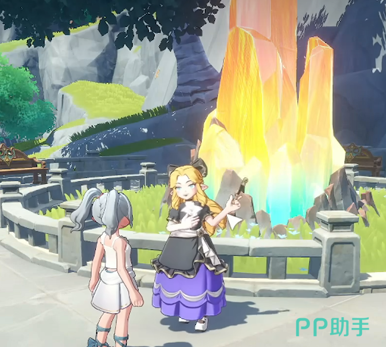 该玩法对应的任务名为精灵寻宝,是参与宝藏挖掘的关键入口。想要开启此任务,玩家需前往地图中的采邑地,在区域中央可以发现一块醒目的大型彩色矿石。在其附近会有一位金色头发的女性NPC驻守,她正是发布精灵寻宝任务的角色。与其对话后即可激活任务流程,正式进入寻宝环节。