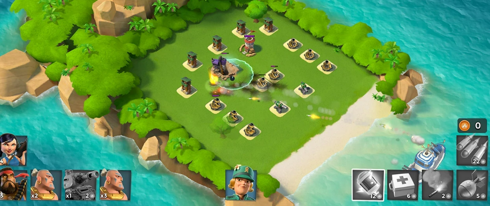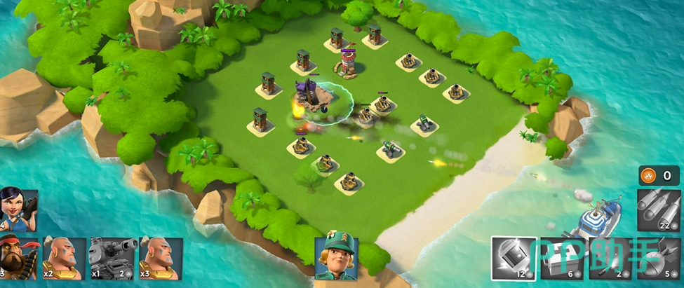 游戏背景设定在一个孤立的海岛上,所有军事行动都围绕岛屿展开。玩家需要综合考虑地形分布与敌方动向来进行布阵。除了地面威胁外,还需防范来自空中的突袭部队,因此防御体系必须立体化且具备快速响应能力。激烈的攻防转换让整个战斗过程充满紧张感与操作快感。