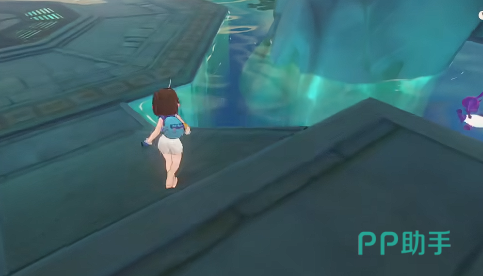 宝箱内含有丰富资源,开启后返回上层,沿途可收集散落的游戏币。到达高处平台后,使用坐骑跳跃至附近雕像的顶部,在此处可获得一颗星星道具。随后需面对海枝枝发起挑战,注意必须派出水系精灵才能进行对战。