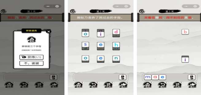 创新性地融合了消除类游戏机制,将拼音字母作为核心元素呈现。玩家需按顺序点击或拖动字母组成指定汉字的拼音,成功拼写即可触发消除动画。初期关卡以单音节为主,随后逐步引入复合韵母、整体认读音节及多音节词,难度平稳上升。
