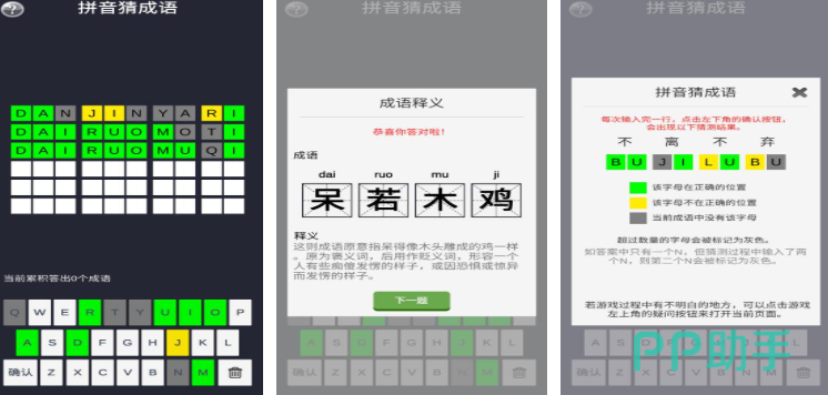 该游戏以拼音线索为核心机制,要求玩家根据提示拼出正确词语。系统通过颜色标记提供实时反馈:输入正确的部分会高亮显示,错误内容则保持原样。这种视觉引导方式有助于孩子逐步推理并锁定正确答案,增强拼音辨识能力。
