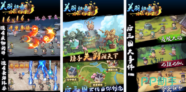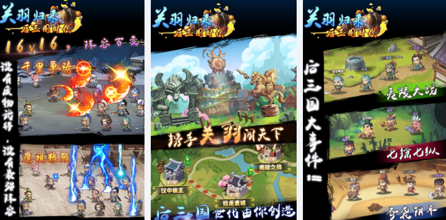 本作以关羽为核心人物之一,同时收录众多经典三国角色。游戏地图多样,天气系统影响战局,结合战棋元素增加策略维度。正确使用增益效果可显著提升武将战斗力。整体美术风格偏向卡通化,技能动画华丽,配合动态战斗场景,带来强烈的视觉冲击。面对强大BOSS时,可通过阵容搭配实现越级挑战,强调团队协作与养成乐趣。