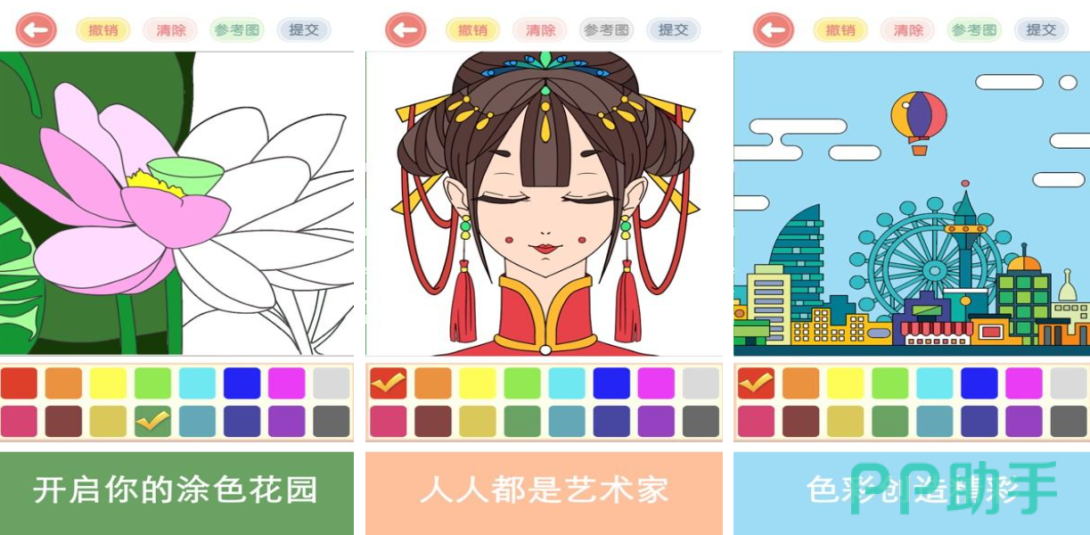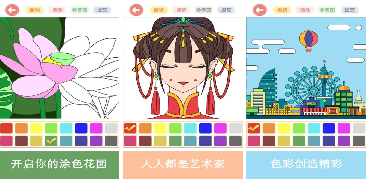 以二次元美学为核心的数字填色游戏,《涂色花园涂鸦减压休闲》主打放松与治愈体验。内置海量精美插图,涵盖人物、风景、幻想生物等主题,玩家可通过点击区域填充心仪色彩,完成个性化艺术创作。整体节奏舒缓,配色方案丰富,适合压力大或需要静心调节情绪的用户。每完成一幅作品都能获得成就感,堪称现代都市人的掌上减压神器。