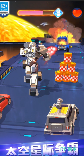 游戏融合高速竞速与即时战斗两大核心玩法。在竞速模式中,玩家驾驶可变形机甲赛车穿梭于复杂赛道,灵活闪避障碍并超越对手;进入战斗模式后立即转化为重型机甲形态,使用专属武器系统摧毁敌方目标。深度改装系统支持全面升级载具性能与战斗能力,通过赛事奖励获取稀有部件,持续提升整体实力。