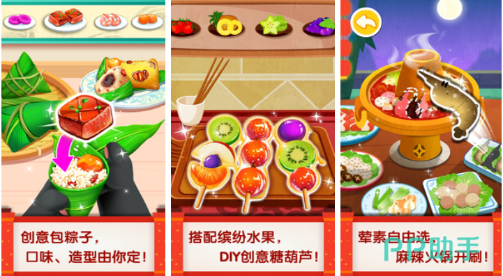 本作将中国传统饮食文化融入儿童游戏设计之中,展示了饺子、粽子等经典菜肴的制作过程。通过荤素搭配、食材分类等玩法,帮助孩子认识不同食物的营养价值。画面风格卡通化,色彩明亮,符合幼儿视觉偏好,同时潜移默化地传递健康饮食理念。