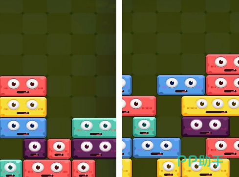 该游戏中的方块造型极具童趣,带有眼睛与嘴巴的表情设计,仿佛一个个活泼的小角色。玩家需要通过拖动不同形状的方块——包括正方形与长方形——合理布局,填满横行后即可触发消除。虽然玩法与传统俄罗斯方块相似,但其独特的美术风格和交互方式为整体体验增添了更多趣味性。