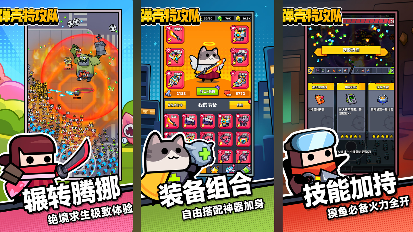 作为一款典型的割草类动作游戏,《弹壳特攻队》主打爽快清屏体验。玩家操控角色在地图中移动,通过升级武器与技能逐步实现范围伤害最大化,后期可轻松实现全屏清怪。操作简单直观,仅需手指滑动即可完成走位与战斗,适合想要放松解压的用户。虽然上手容易,但随着关卡深入,敌人种类与强度也会不断提升,保持了一定的策略性与成长乐趣。