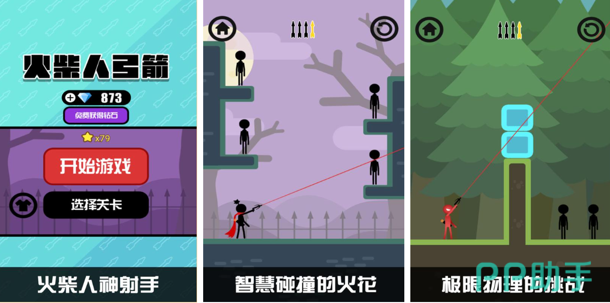这款竖屏操作的射箭游戏以火柴人为主题,画风简洁却不失细节。内置多种弓箭武器供玩家自由选用,结合真实物理引擎,射击轨迹更加贴近现实。支持红外线瞄准功能,帮助玩家快速锁定目标,精准打击关卡敌人。同时,地图中散布着各类可拾取道具,用于增强弓箭威力或解锁特殊技能,考验玩家的操作细腻程度与反应能力。