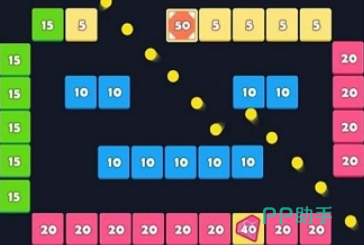 这是一款经典的弹球式消除游戏,玩家需操控小球撞击屏幕上方的砖块阵列以完成清除任务。每次碰撞都会导致砖块消失,但必须小心控制反弹路径,避免小球掉落。每一关提供的小球数量有限,必须在耗尽之前击碎所有指定目标方可过关,考验反应力与预判能力。