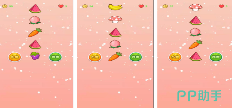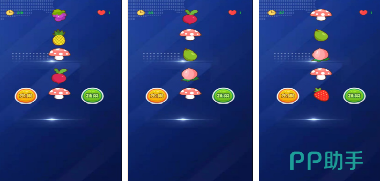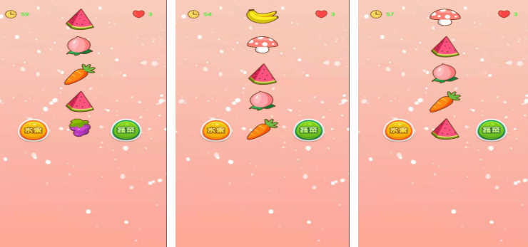水果蔬菜猜猜乐注重反应速度与判断精准度的结合,是一款非常适合利用通勤、休息等碎片时间进行游玩的作品。每局开始前会明确提示目标类别——可能是某种特定水果或蔬菜类型,随后屏幕上将快速出现混杂排列的食材图标,玩家需在规定时间内通过点击或滑动操作,准确挑选出符合要求的目标项,玩法紧凑且富有挑战性。