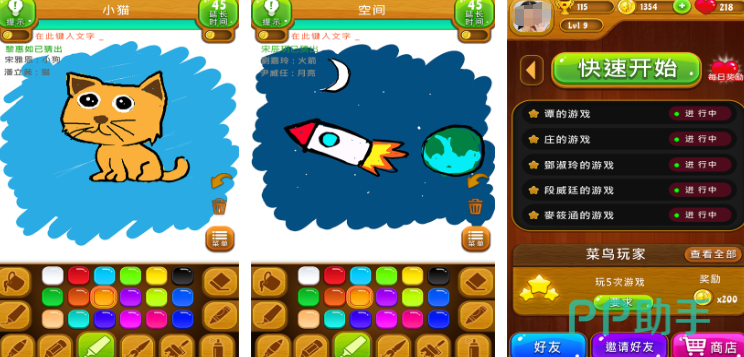 你画我猜以创意绘画和实时互动为核心,构建了一个具有高度社交属性的休闲平台。支持多人在线匹配,房间内系统随机指定一名玩家为画师,其余为猜题者。画师需根据系统给出的词语,在限定时间内用绘图工具表达出来。工具栏包含丰富的功能,如自由更换画笔颜色、使用橡皮擦修改、填充背景等,便于创作清晰画面。