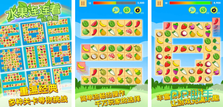 开心水果连连看2在经典连连看规则之上进行了多项优化与创新,赋予传统玩法新的生命力。游戏规则清晰易懂:玩家需要在布满果蔬图标的方格中,找到两个相同的图标,并使用不超过三条直线的路径将其连接。成功配对后图标消失,清空全部图块即可通关。