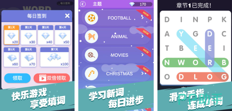 面向成年用户的词汇积累类游戏,采用创新的连线填词机制。玩家只需滑动屏幕即可组成正确单词,操作简便且富有挑战性。每日签到和在线任务系统提供持续学习动力,涵盖生活、职场、旅行等多个语境下的实用词汇,助力玩家稳步提升英文表达能力。