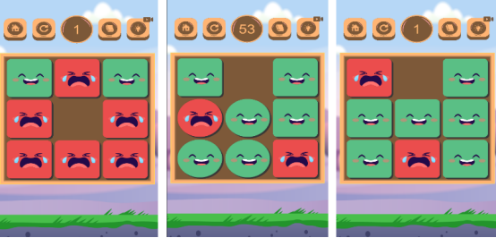 游戏中布满各种表情方块,包含笑脸、哭脸等多种形态。操作极为简单:滑动屏幕移动方块,使其与相邻的表情发生切换变化。目标是将所有哭脸全部转化为笑脸,方可顺利通关。看似简单的机制背后,隐藏着层层递进的逻辑难题,既考验反应力也锻炼思维能力,是一款寓教于乐的轻量级益智作品。