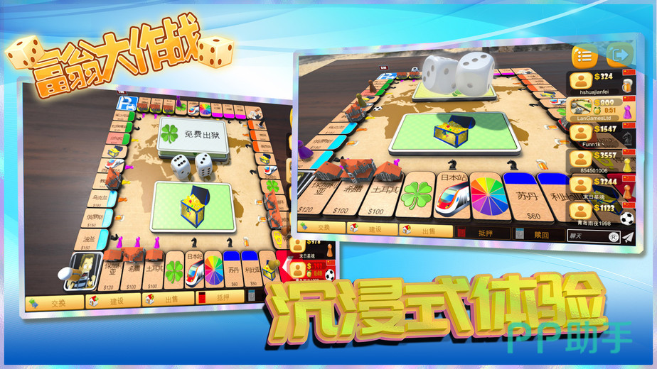 这是一款以掷骰子为核心的经典休闲游戏,三人玩起来节奏明快又富戏剧性。玩家在地图上行进,购买地块、建造房屋并收取租金,目标是让对手破产。虽然操作简单,但途中会遇到各种干扰道具,如强制交换地产、退回起点等,这些设定常常导致局势瞬间逆转。每一次投骰都可能改变战局走向,整场游戏充满意外与笑声。