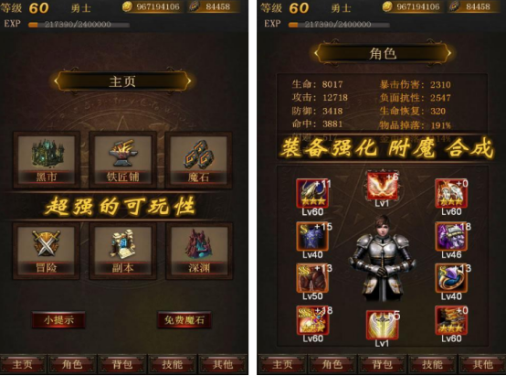 该游戏以高速刷宝为核心玩法,采用经典的暗黑美术风格。进入战斗仅需三秒即可触发装备掉落,节奏紧凑刺激。高爆率设定使得稀有装备获取更加轻松,配合角色持续升级与武器更换,战斗力迅速攀升。技能系统随角色成长逐步解锁,每一次击败敌人都可能带来属性飞跃,让玩家沉浸在不断变强的爽快循环之中。