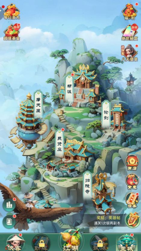 这是一款以Q版画风呈现的武侠题材卡牌手游。在游戏中,你将踏入一个充满江湖恩怨与侠义精神的世界。完成主线任务是提升实力的关键路径,若遭遇难关,可通过收集资源强化卡牌来突破瓶颈。与其他玩家或NPC对战时,合理搭配手中的武学卡组至关重要,灵活运用策略才能克敌制胜。此外,游戏中融入了大量经典侠客故事和江湖传说,让玩家沉浸于原汁原味的武侠氛围之中。