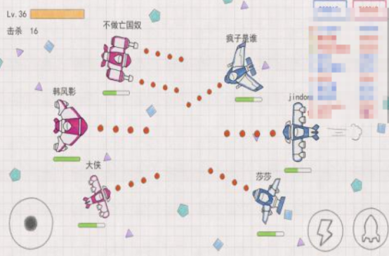 采用极简美术风格设计,主打轻竞技多人联机玩法。玩家操控单架小型战机,在限定区域内与其他对手展开对抗。子弹发射为自动模式,重点在于走位与机动控制。通过击败敌人获取资源升级装备,提升生存能力和输出效率,适合喜欢快节奏对战的用户。