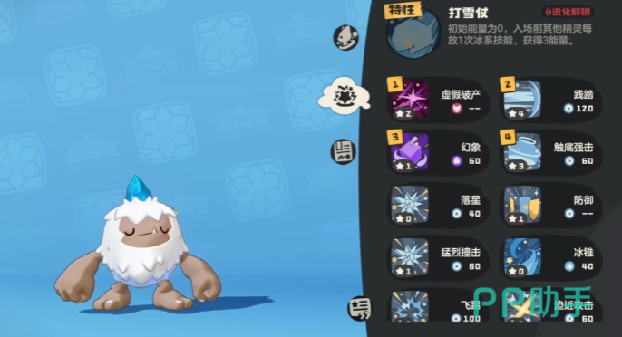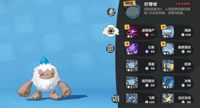 刚开始的时候雪豆丁会掌握冰之砾、猛烈撞击这些基础技能,不用太复杂的操作,就能直接打物理伤害,等等级慢慢升上去,能解锁的技能就多了,冰之球很有意思,不是一下打出去就完了,而是能连续打好几个回合,而且越往后威力越大,三角之力更特别,运气好的话还能让对手陷入麻痹、烧伤或者冰冻的状态,打乱对方的节奏,到了高阶阶段它还能学会践踏、吞噬、压扁这些厉害的物理攻击技能,尤其是有些技能得靠能量才能发挥最大效果。