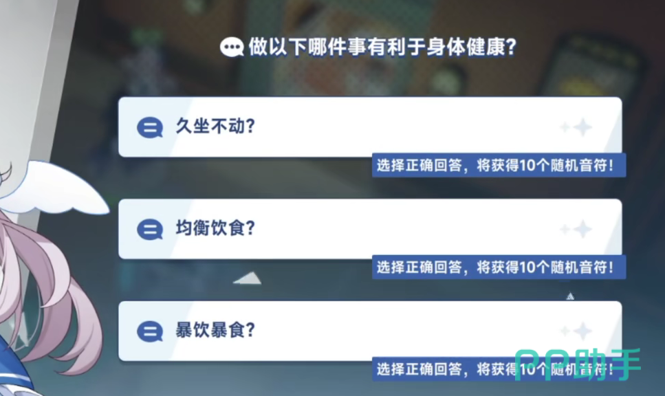 “随机问题”只有在“星塔探索”以及“主线剧情”内容当中才会出现,每一次的出现都会以选择题的形式,总共有三个选项,玩家答对后,可以解锁不同的奖励,例如随机音符、辉光币、星之砂等等道具,当然如果玩家选择错误也有一定的惩罚,例如减少血量、获取幸运值降低的debuff等等,这些debuff对于爬塔而言是最大阻碍。